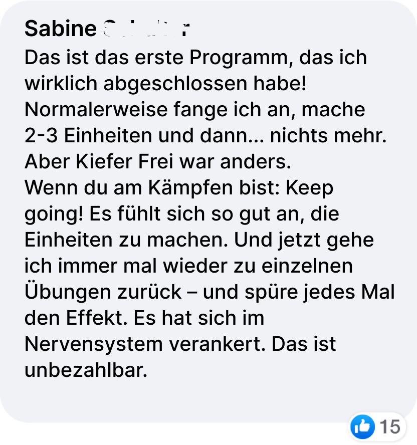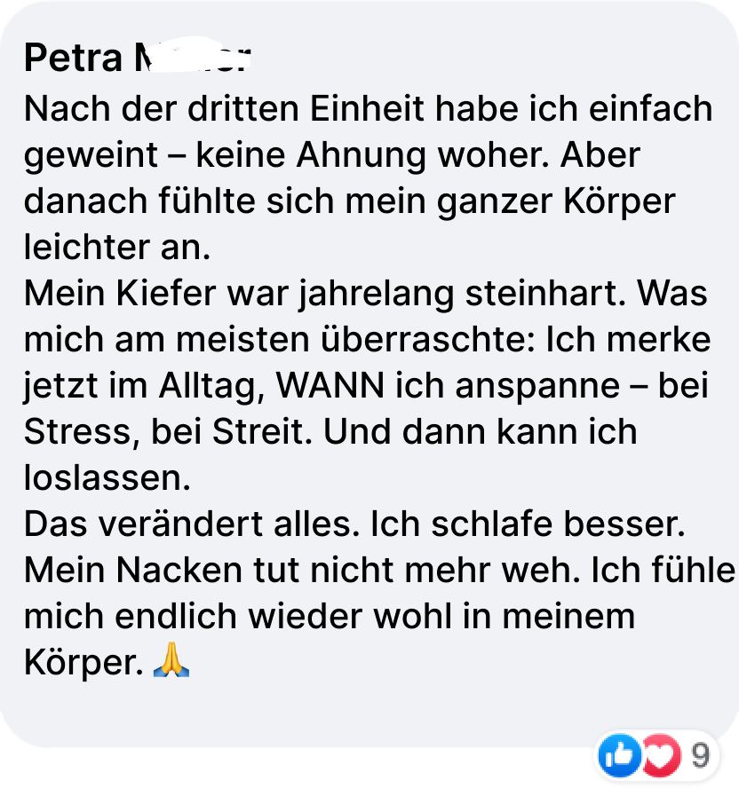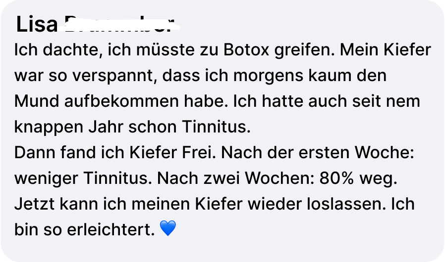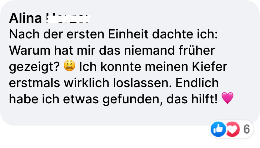 Dein Nervensystem lernt neu. Die chronische Kieferanspannung löst sich und du fühlst dich endlich wohler in deinem Körper