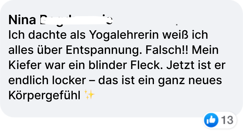 Wenn dein Kiefer loslässt, atmet dein ganzes System auf. Du bleibst ruhiger - auch wenn's außen hektisch wird.